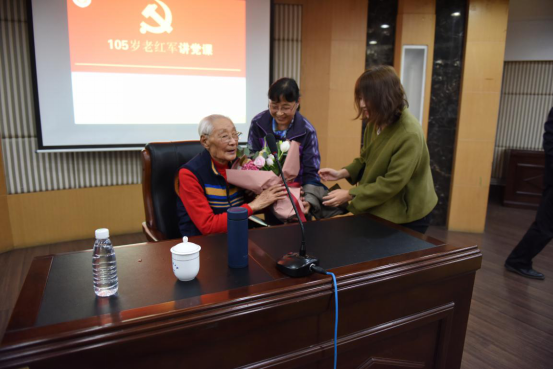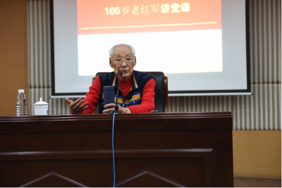 历史的车轮滚滚而过,如今的秦老虽已是105岁高龄,但对这段历史仍然记忆犹新,这种不畏艰难、奋勇向前的革命精神依然牢记于心。他勉励在座的同学们在社会主义现代化建设的新时期,要传承工农红军的革命精神,严格自律,遵纪守法,学好科学文化知识,德智体全面发展,勇做新时代的弄潮儿。