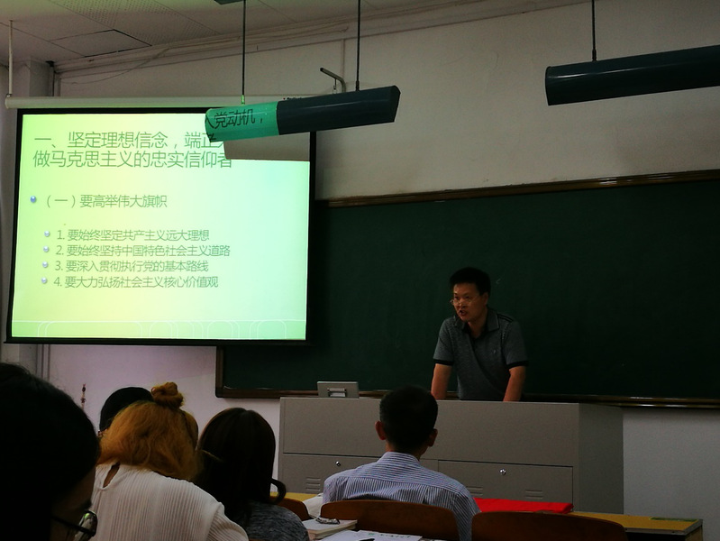 开学典礼结束后,校关工委副主任徐如荣老师为入党积极分子开始了党课的第一讲—— “从思想路线的变更,了解我党光辉历程。”