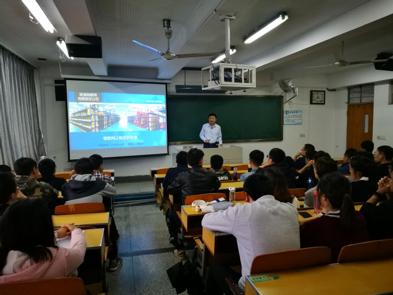 公司周健书记、办公室于茜老师、物流技术与装备课程丁飞老师,该课程全班同学、学院及其他学院物联网领域的相关研究生聆听了报告。