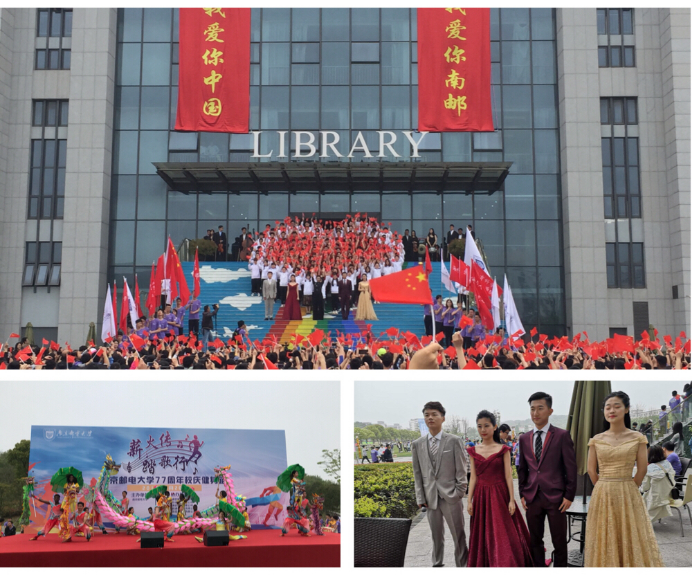 上午9时10分,参加校庆活动的公司师生在仙林校区图书馆广场集合,欣赏精彩的文艺演出,参加校园跑。公司2018级员工王赟、赵宇演唱《我和我的祖国》庆贺母校77岁生日。