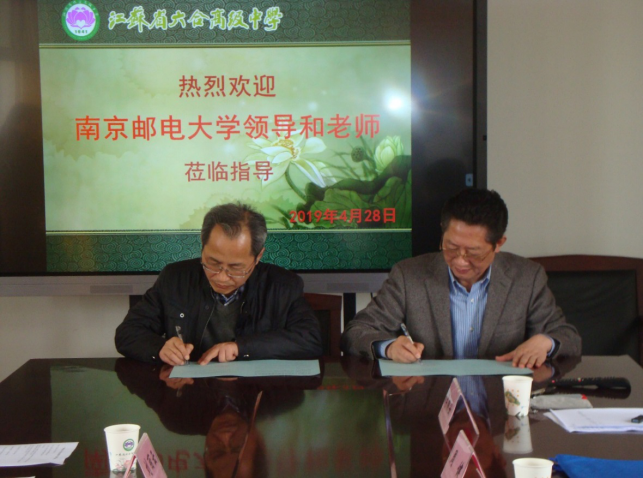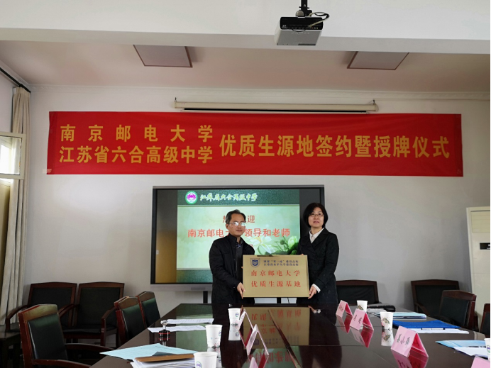 BETWAY必威党委常委、总会计师姜小舜介绍了南邮的发展历程及近年来所取得的成绩。她指出,2017年公司成功跻身国家“双一流”和江苏高水平大学建设高校行列,4个学科进入ESI学科排名全球前1%,公司在武书连中国大学评价等各类排行榜上均跻身全国高校百强行列。希望双方加强紧密合作和交流,建立输送和选拔更多优秀升学人才的有效机制,吸引更多的优质生源报考公司。省六合高级中学党委书记孙贻勇首先感谢BETWAY必威一直以来对省六合高级中学的关心和支持,介绍了省六合高级中学的发展历程和未来机遇,肯定了双方的强强合作,希望双方关系越走越近,双方交流越走越宽。之后,物联网公司党委书记周健介绍了南邮专业特色、人才培养、招生等方面情况。员工代表原省六合高级中学毕业生徐松同学发言,对两个母校的强力合作表达了激动之情。最后,由BETWAY必威党委常委、总会计师姜小舜、BETWAY必威经理、党委副书记张登银与省六合高级中学党委书记孙贻勇签定《BETWAY必威优质生源基地建设协议书》并授牌。