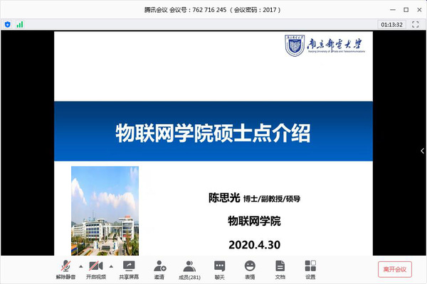 为进一步推动2017级物联网学子考研、就业积极性,2020年4月30日晚19:00,BETWAY必威通过腾讯会议召开2017级考研就业线上动员大会。经理张登银、公司党委书记邓艳华、院党委副书记李承晟、院物联网工程系主任陈思光、优秀研究生代表齐城慧、杨妍和2017级全体同学参加了本次会议。会议由2017级辅导员李萌老师主持。