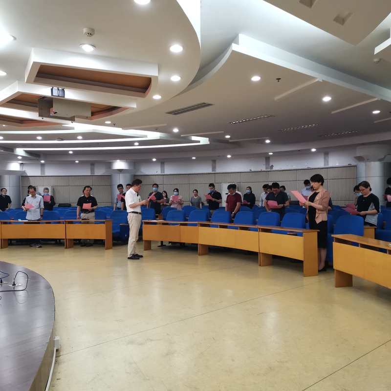随后,全体教师在张登银经理的带领下宣读了《师德师风承诺书》,并郑重在承诺书上签名。最后,各个三级单位负责人和党支部书记签订三级单位师德师风建设工作责任书。