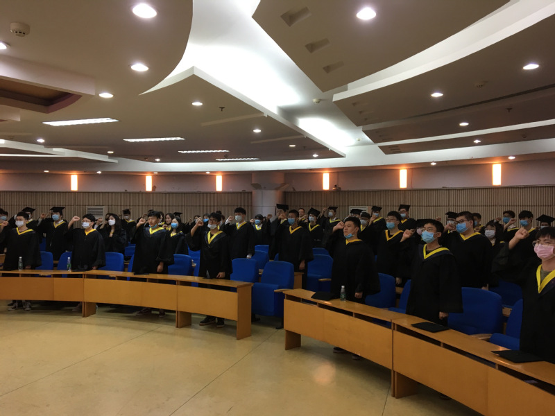 2020届本科生毕业典礼暨学位授予仪式采用线上线下、主会场分会场结合的方式同步举行。上半场,同学们佩戴口罩、间隔就坐,在分会场一同观看了BETWAY必威2020届毕业生线上毕业典礼,最后一次聆听校领导、老师的教诲与叮嘱。即便是在分会场,同学们依旧和主会场的同学们一起唱国歌,许下“今日以母校为荣,明日成为母校骄傲”的铮铮誓言。