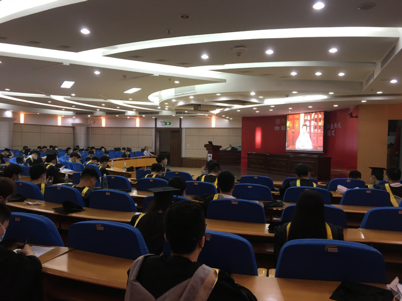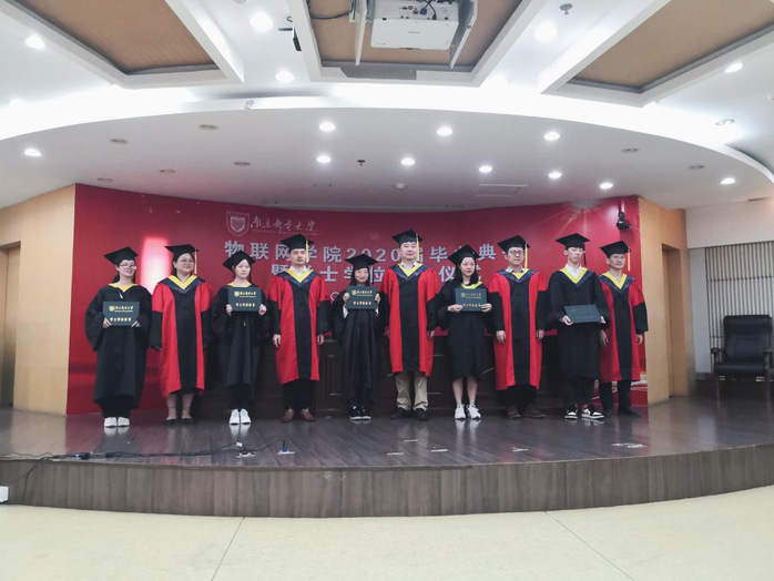下半场举行了物联网公司2020届本科生学位授予仪式。在学位授予仪式上,同学们身着学士服,头戴学士帽,依次走上主席台,物联网公司的导师们为他们“拨穗正冠”,学士帽的流苏从右边拨到左边,象征着毕业生已学有所成,可以展翅高飞。“拨穗正冠”不仅是毕业的标志,更是老师们对物联网学子们未来“乘风破浪”的美好愿景。仪式最后,大屏幕上播放的短片让毕业生们重温难忘的大学,那些闪光的片段浮现眼前,连缀成同学们鲜活又明亮的美好记忆。“再见了互相嫌弃的老同学,再见了来不及说出的谢谢。”在师长的祝福中,在与好友分别的泪水中,在对未知前途的激动与忐忑中,在南邮那些穿过梧桐树的微风中,伴随着毕业典礼的结束,同学们的老员工涯也告一段落,聚是一团火,散也终成满天星。