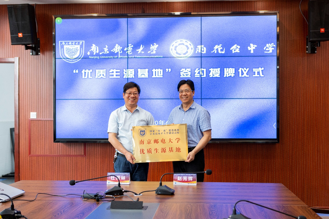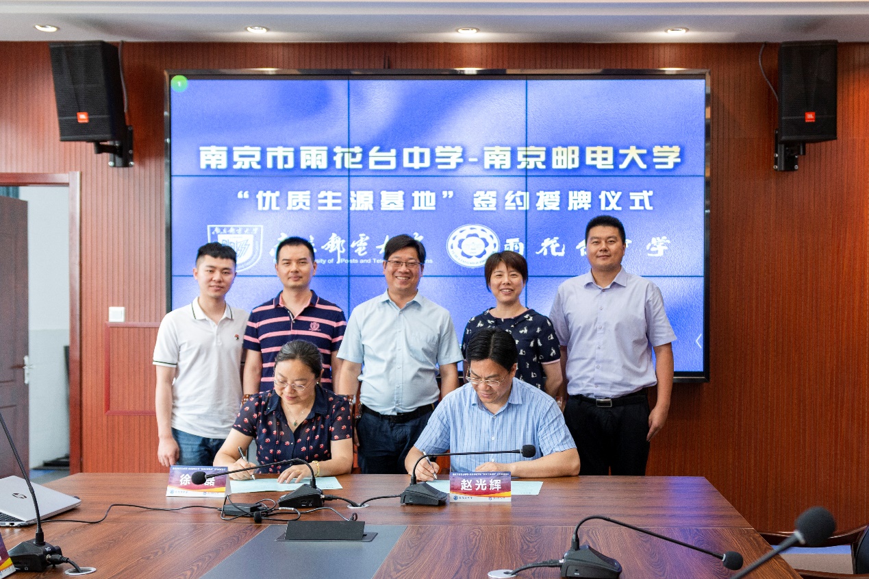 6月24日下午,公司“优质生源基地”授牌仪式暨“5G时代,梦想加邮之双百行动”在南京市雨花台中学举行。公司人才招聘处副处长杜月林、物联网公司党委书记邓艳华、党委副书记兼副经理徐磊、物联网工程系主任陈思光、院办桂兴亮代表学校南京招生宣传组,与南京市雨花台中学董事长赵光辉、教师发展处副主任刘进全一同出席了活动,并进行了深入的座谈交流。
