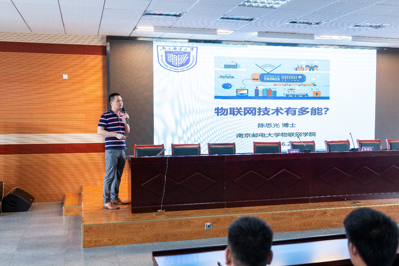 随后 “5G时代,梦想加邮之双百行动进名校”讲座在行政楼报告厅举行。陈思光副教授以“物联网技术有多能”为题,结合当前飞速发展的行业趋势,从物联网的概念、关键技术和具体应用三个层面表达了“物联网未来可及”,图文并茂、事例生动的讲解让员工们大开眼界,连连赞叹。接着邓艳华书记为雨中师生呈上“餐后甜点”,慷慨激昂地介绍了公司专业特色、团队力量以及人才培养、高质量就业的成果。台下掌声连连,感谢为他们紧张的学习生活带来了如此酣畅淋漓的报告。