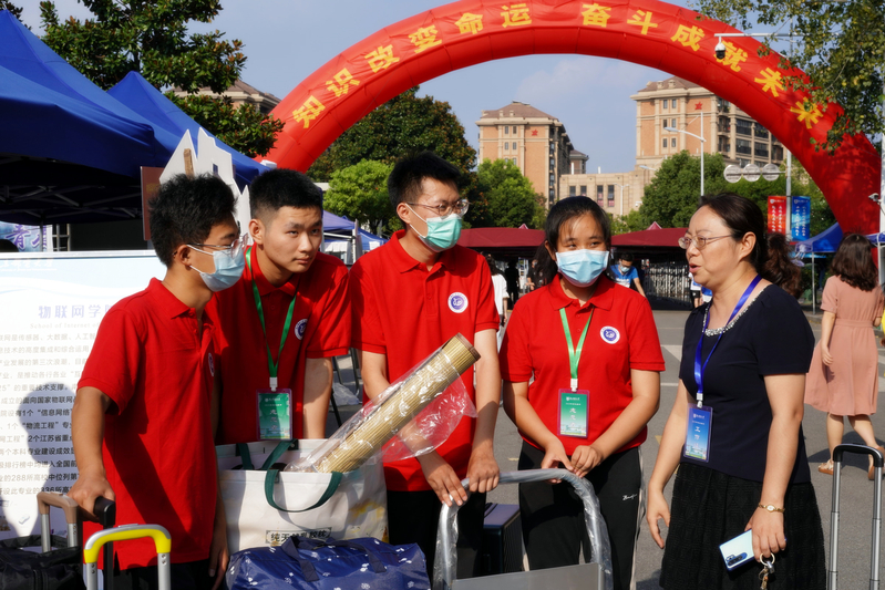 百名志愿者和同伴导师热情服务,发挥朋辈学长的示范引领。看,那里是物联网的“红色文化衫”,数百名志愿者身着红色文化衫,穿梭在校园各处。有新生的地方,就有咱们的志愿者。去年或是前年的报到日,他们是被迎接的小柚子,而现在,他们是爱的传递者。每个班级配备的小班主任都是高一年级的优秀学长,做好服务的同时答疑解惑,发挥示范引领作用。