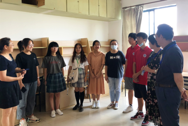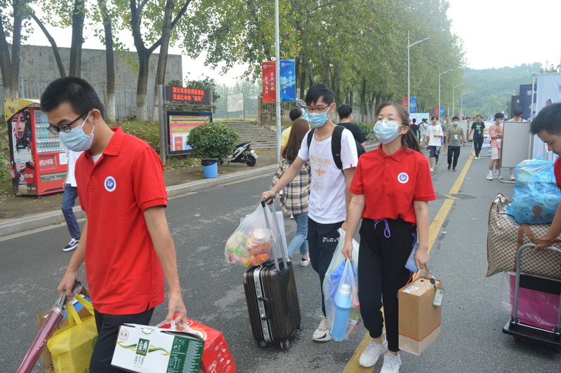 全体院领导、班主任齐聚迎新现场,凸显人文关怀。在2020这个特殊的年份,新冠肺炎疫情的影响导致新生报到特殊而艰难,学院领导高度重视新生报到工作,新生班主任也主动肩负重任,他们不仅全程参与了新生报到前的方案筹划,还在报道首日全体领导和班主任赶赴迎新现场,并前往新生宿舍,向志愿者们表示慰问,给新生带来殷切关怀,柚子们在老师爱的关怀下找到回家的感觉。