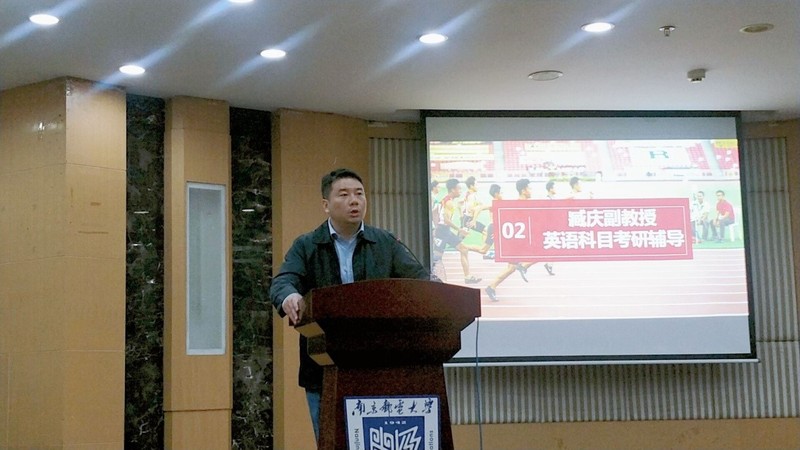 臧庆副教授从考研英语科目的大纲变动、复习重点以及应试时间安排为大家进行了分析。臧老师首先带大家回顾了考研英语大纲词汇的变动,提醒大家这是一个不可忽略的要点,他还从各个具体题型为大家进行了分析,强调了真题的重要性,呼吁大家积极练习真题,养成英语科目的“考研生物钟”,同时重点强调考试过程中的时间安排方法。