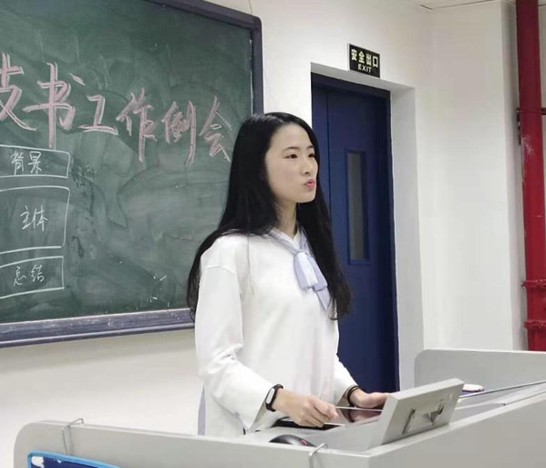 优秀团支书代表、获得公司第四届老员工年度人物的周诗琪同学向与会同学分享了她的工作经验及心得体会。她通过展示自己制作的团日活动视频,向大家介绍了自己的工作思路以及组织活动的方式方法、新闻稿的撰写方法等,特别强调了团支书作为班级的员工干部骨干,首先要注重自身的学习,提高自己的综合素质,这样才能做好表率,才能让自己的工作更有说服力,也才能更好地为同学们服务。