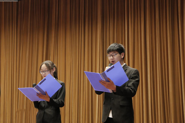 学员代表朱娴同学发言,她号召全体学员加强理论学习,明确未来方向,用心投身实践,以奋进彰显初心,用担当践行使命。随后,董晴晴同学、邹昊同学朗诵《月光下的中国》,激励全体学员怀揣家国情怀,牢记初心使命。