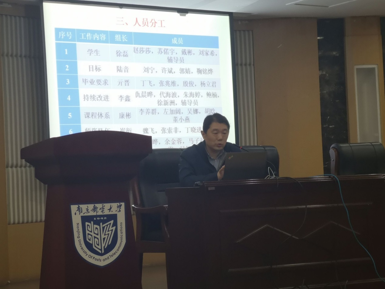 首先,陆音副经理作了自评报告撰写工作动员。他对《工程教育认证自评报告指导书》作了简要解读,就时间安排和人员分工进行了工作布置,对自评报告撰写提出了五点要求:一要认真学习标准,二要责任落实到人,三要时间落实到天,四要工作保质保量,五要服从组织安排。