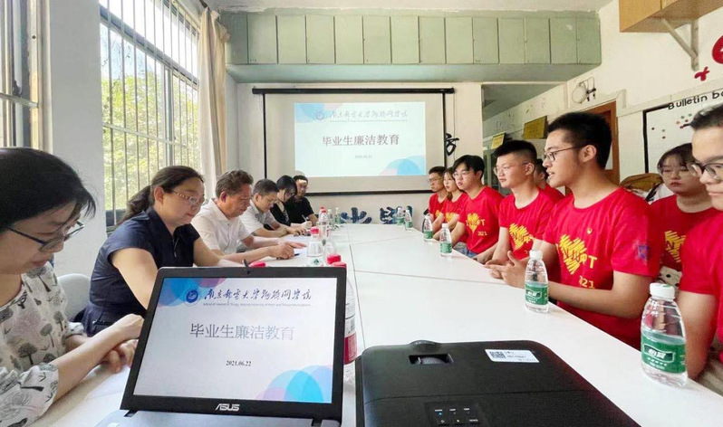 2021年6月22日下午,物联网学院2021届本科毕业生座谈会在仙林校区菊苑举行,经理张登银、公司党委副书记徐磊、网络工程系主任亓晋、物联网工程系副主任刘宁、毕业班辅导员李萌以及2021届毕业生代表参加了本次座谈会,座谈会由徐磊副书记主持。