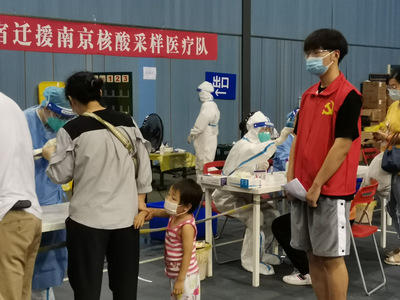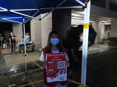 “由于南京疫情,紧邻南京的扬州出现了多例南京关联确诊病例。7月28日至31日,扬州已累计报告本土确诊病例16例。在扬州市发布新冠肺炎疫情防控工作的号召后,我第一时间报名了所在的连福社区的志愿者。我的工作主要是扫描采样码,帮助居民进行登记。为了高效排查,我们采用的是每十人一组的混合采样,需要将十个人的身份信息对应到一个试管上。这项工作需要与居民面对面接触,因此我穿了一天的隔离服,虽然隔离服里很闷热,但也大大维护了自身的健康安全。“德尔塔”变异毒株毒性大、感染性强,现场居民必须每人间隔一米按序进行采样。志愿者需要提醒前来检测的居民保持一定的距离,排好队十人一组进行采样。天气炎热,在太阳的暴晒下,我们都汗流浃背,一天下来都会非常疲惫。