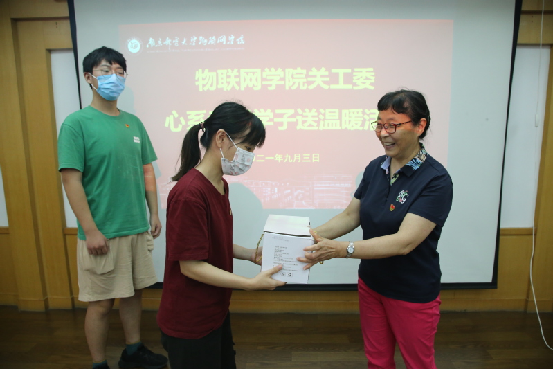为了传承秦老书记关爱下一代、奉献社会的大爱,报告会结束后秦志红老师代表BETWAY必威关工委向各位暑期留校的考研学子赠送慰问品,并与员工们亲切交谈,鼓励他们弘扬长征精神,秉承南邮校训,奋发图强、坚持到底。