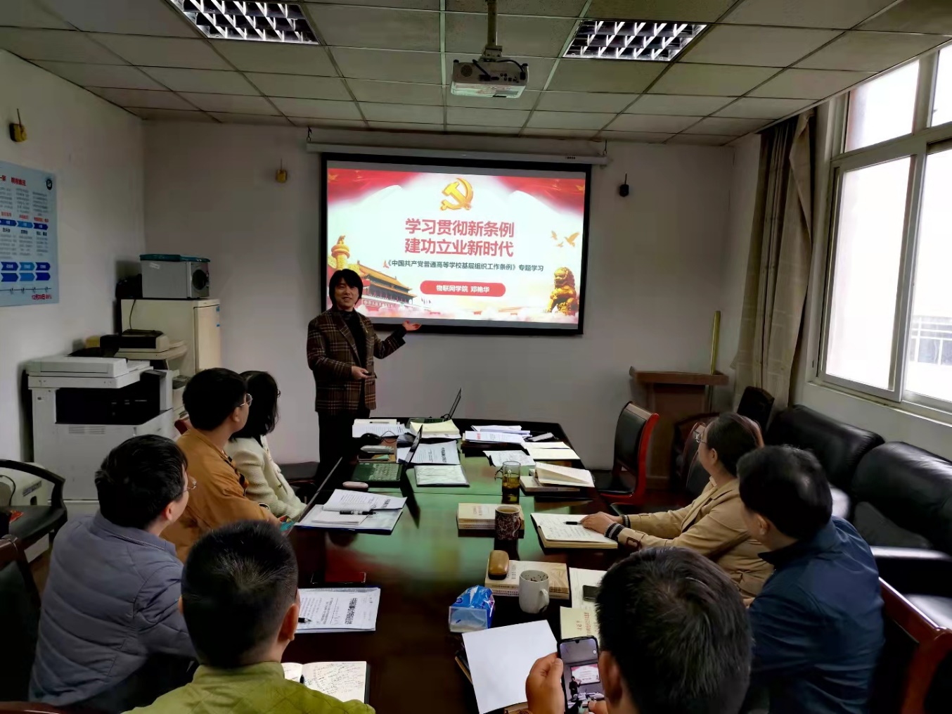 此次学习会内容丰富。首先,与会人员共同观看了习近平总书记在陕西榆林考察的新闻视频,学习了*************。陆音副经理领学了党史学习教育之习近平重要论述专题——“五位一体”谱华章——关于中国特色社会主义事业总体布局;万山磅礴有主峰——关于坚持和加强党的全面领导等重要章节。邓艳华书记以《学习贯彻新条例,建功立业新时代》为题主讲微党课,对《中国共产党普通高等学校基层组织工作条例》的修订背景、意义和修订内容以及如何贯彻落实《条例》等三个方面进行重点解读,并领学了习近平总书记在中央人才工作会议上的重要讲话精神,传达了《新时代江苏高校三级党组织“强基创优”建设计划(2021-2025年)》文件精神和BETWAY必威《关于贯彻落实<中国共产党普通高等学校基层组织工作条例>若干措施的通知》精神。理论学习中心组成员、办公室主任胡文龙和全国党建工作样板支部、学工二支部书记王林分别结合自身工作谈了学习体会。