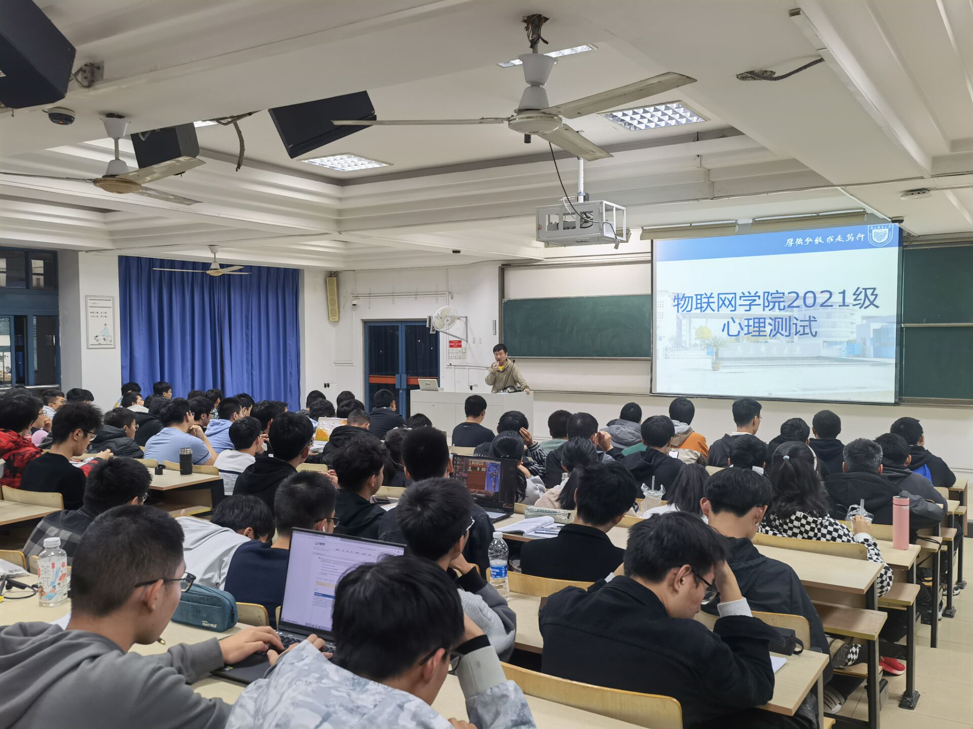 20级辅导员赵珂首先向21级同学们介绍了相关知识,强调了心理健康的重要性。紧接着,他带领大家学习了学校的相关通知,正式开展了心理测试。