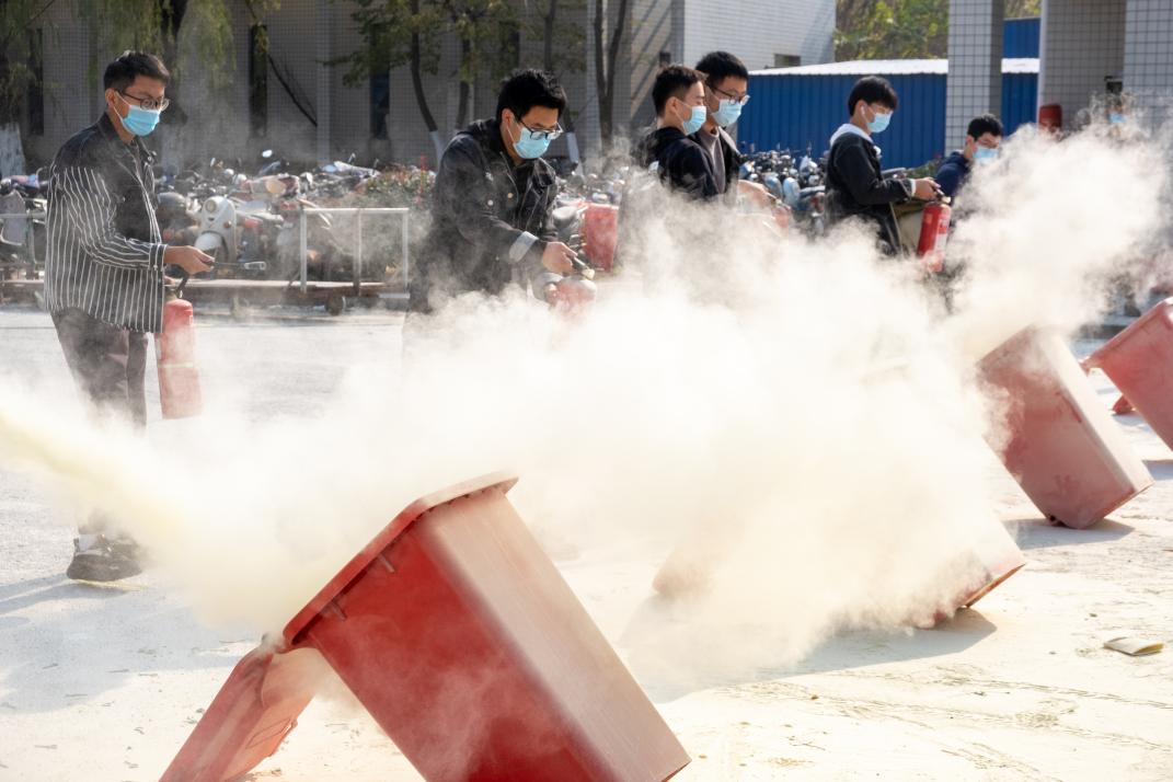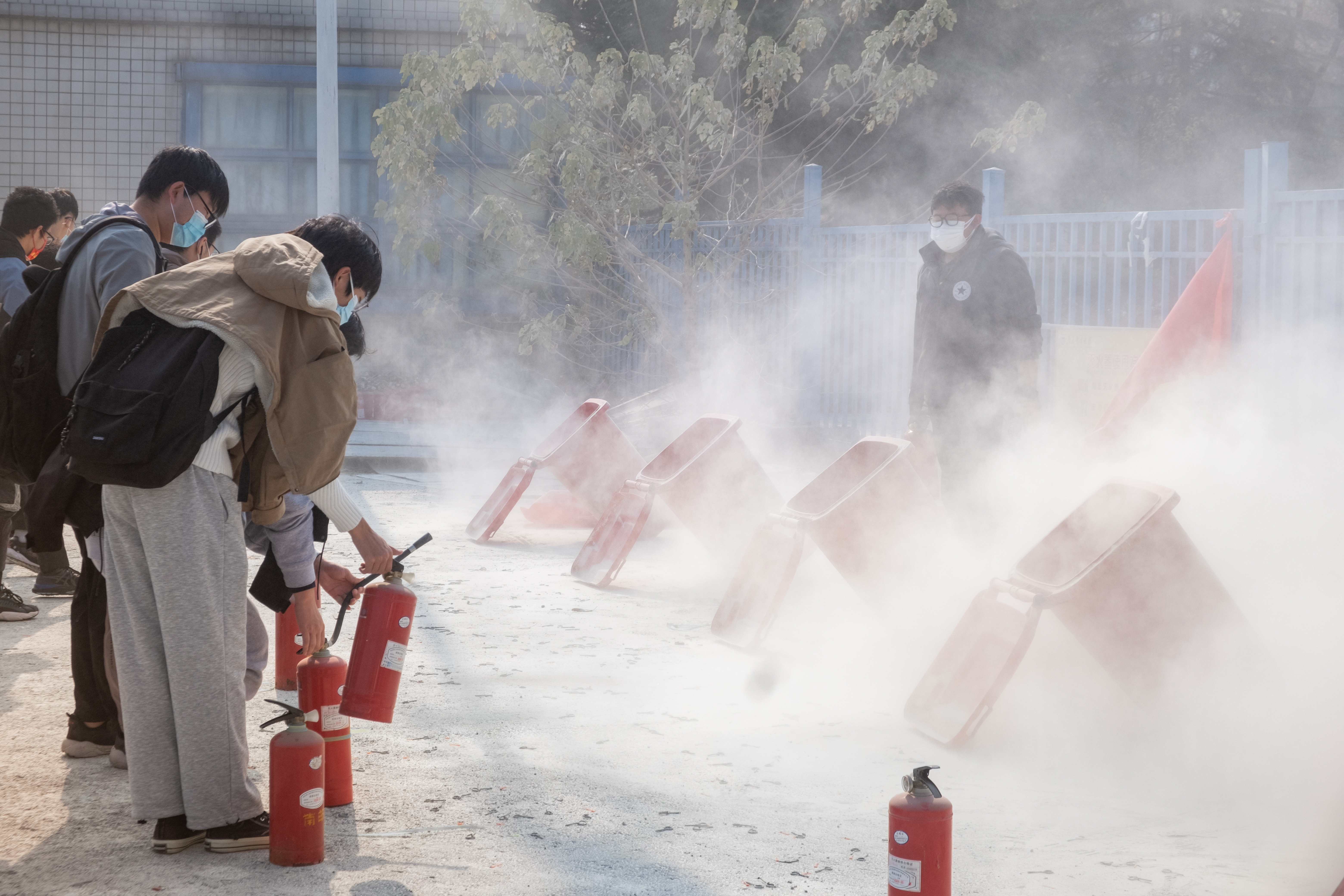 为进一步增强公司师生消防安全意识,提高员工对火灾应急扑救处置能力。公司于11月29日组织全体2021级新生在学校西门进行了灭火器使用操作学习和模拟逃生演练。
