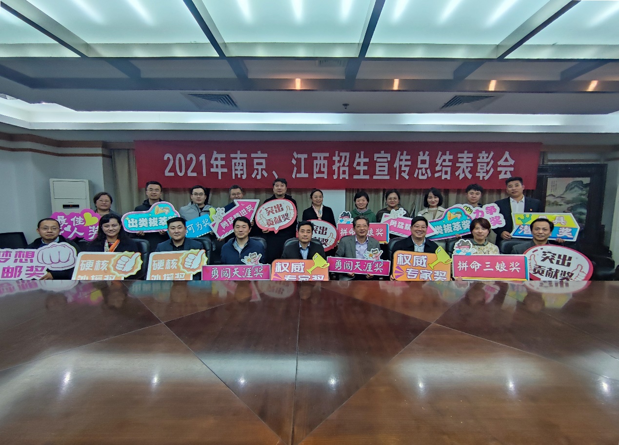 本次会议旨在南京、江西招生宣传的工作总结、经验分享、表彰展望。首先,公司党委书记邓艳华以《凝心聚力,吸引一流生源》为题,从2021年战况、主要做法、工作展望这三个方面总结了此次招生宣传工作。她指出,公司负责的两个招生宣传组严格贯彻学校招生宣传政策并予以形式创新,全体宣传师生紧密团结、高度负责,形成了全员参与、全线出击、全年贯穿、全情投入的四个“全”工作机制。在全体招宣人员的辛勤付出、共同努力下,最终南京地区录取人数384人,居全省十三个地级市第二名,其中较去年排名上升10%以上的新生194人;江西省已经建立了8所优质生源中学,招生宣传和“双百行动”实现了全覆盖、常态化,生源质量提升指日可待。