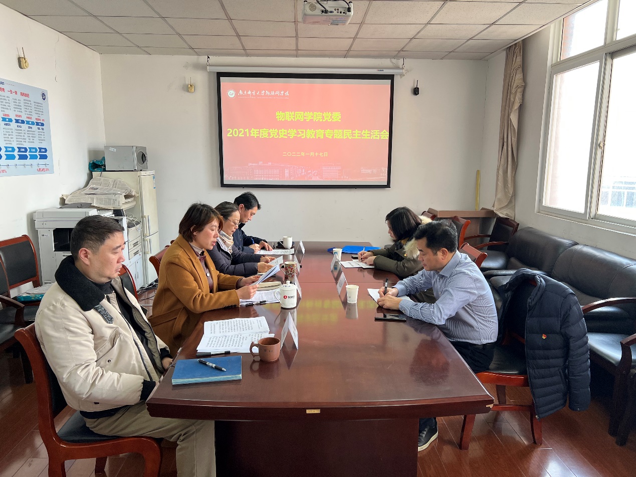 2022年1月17日下午,物联网公司党委在学院311会议室召开党史学习教育专题民主生活会。公司党委常委、副董事长张志华,校审计处处长吕海蓉到会指导,会议由物联网公司党委书记邓艳华主持,公司党委班子全体成员参加会议。