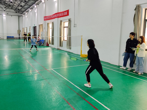 比赛分为师生友谊赛、男子单打、女子单打、男子双打、男女混合双打5个项目,师生们踊跃参赛。赛场上,每位选手都神采奕奕、活力四射,展示出顽强拼搏的体育精神,高远球、扣球、吊球等各项球技展现得淋漓尽致;老师们的精彩表现更为比赛增色不少。男单项目参加人数最多,赛况也最为激烈。经过一轮又一轮的角逐,选手的体能与反应速度都有了不同程度的降低,但他们仍拼尽全力,进攻和防守炉火纯青,比分相持不下,博得了现场观众的阵阵喝彩。
