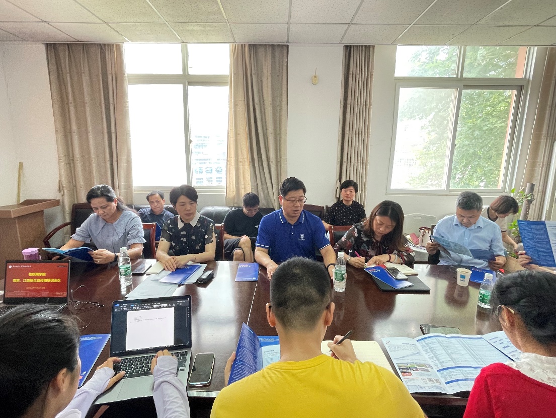 为适应高校招生新形势、全面提升招生宣传组成员综合业务能力,6月22日上午,公司召开招生宣传培训会。校人才招聘处副处长杜月林、公司党委书记邓艳华、副经理陆音、南京组、江西组全体成员参加会议,会议由徐欣娅副书记主持。
