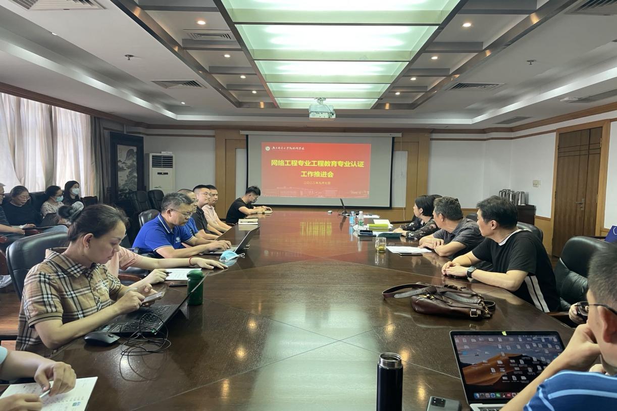 9月7日下午,公司在三牌楼校区科学会堂第三会议室召开网络工程专业参加教育部工程教育专业认证工作推进会。公司党委书记邓艳华、党委副书记徐欣娅、副经理潘甦、陆音及网络工程专业相关负责教师参加,会议由学院经理、网络工程专业负责人张登银主持。