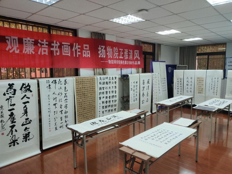 书画展廉洁,物院扬清风。为深入学习贯彻党的二十大精神,响应BETWAY必威2022年度“校园廉洁文化月”活动号召,BETWAY必威于2022年11月14-18日在三牌楼校区举办了为期一周的廉洁书画作品展览活动。公司党委邓艳华书记、张登银经理等院领导、教师代表、院关工委退休老教师、员工代表参与了此次活动。
