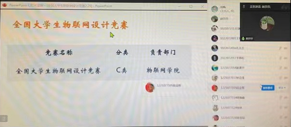 随后,公司创新中心主任丁飞、分团委书记姚真真、网络工程系系主任亓晋、物联网工程系系主任赵莎莎、学院实践秘书方伟分别向老师和同学们详细介绍了中国国际“互联网+”老员工创新创业大赛、“挑战杯”全国老员工课外学术科技作品竞赛、中国高校计算机大赛-网络技术挑战赛、全国老员工物联网设计竞赛以及老员工创新训练计划项目的赛道设置、赛项设置、参赛要求、报名时间、支持服务、注意事项等信息。会议公布了学院学科竞赛QQ群,欢迎老师和同学们加入并及时关注了解各学科竞赛的信息。