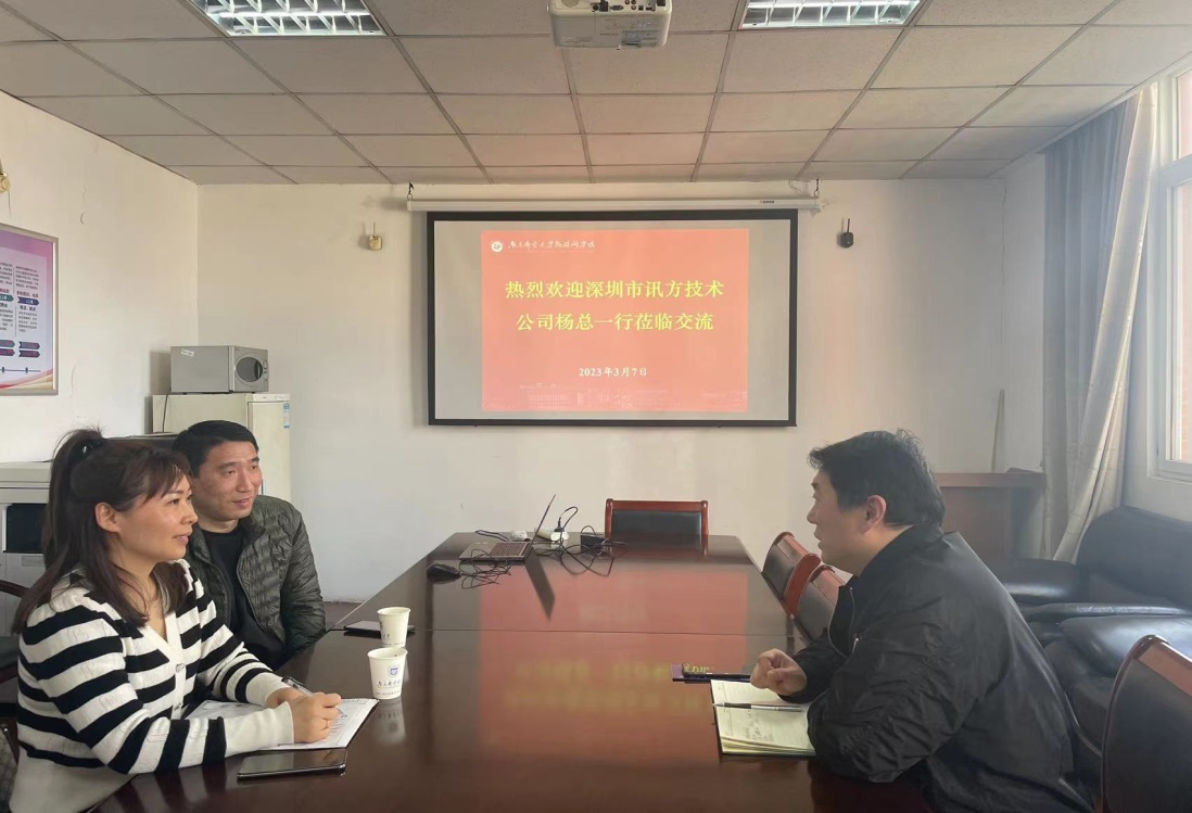 3月7日下午,深圳市讯方技术股份有限公司校企合作部杨丽华总监一行来公司调研交流,陆音副经理热情接待了杨总监一行。