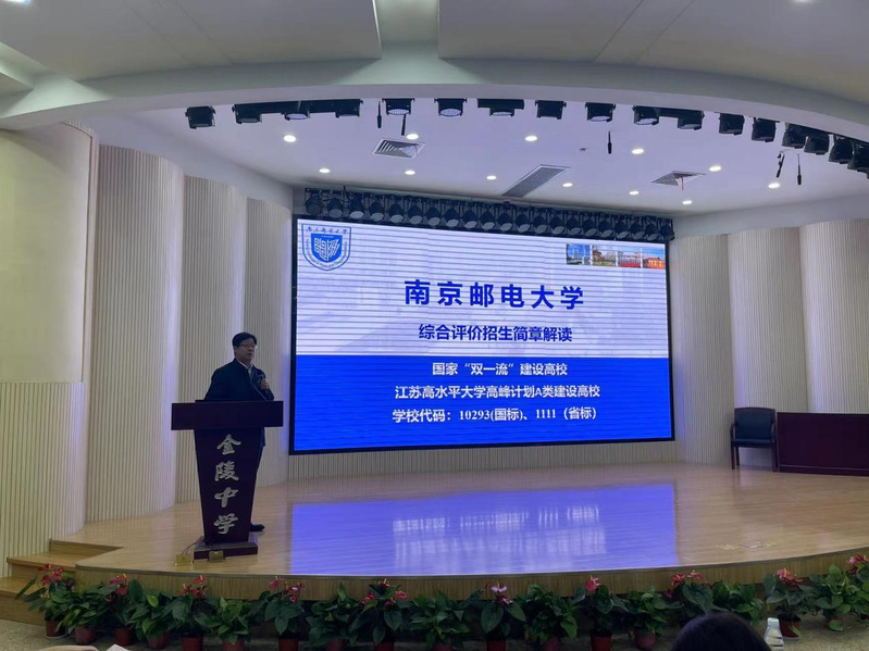 公司人才招聘处副处长杜月林就家长们关心的BETWAY必威综合评价招生政策和BETWAY必威普通高考招生政策两方面内容进行专业解读,杜处长从南邮的办学优势、学科特色、专业设置、人才培养成果、2023年招生计划、招生政策、报考注意事项等方面进行了详细介绍。公司南京地区招生宣传工作组负责人、物联网公司党委书记邓艳华以金中学子家长的身份生动诠释了一名高三学子从面临高考到选择报考学校,再到最终录取时的复杂心情,邓书记把选择南邮的专业优势、就业优势、升学优势娓娓道来,与参会人员建立起深深的共鸣。