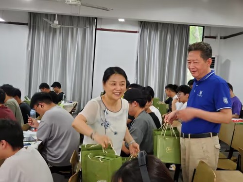 活动最后,学院领导老师一同为考研学子们送上了精心准备的考研礼盒。虽然天气酷热难耐,但此次考研慰问活动为同学们注入了一阵“强心剂”,同时也彰显了学院以生为本的工作理念和情系学子的人文关怀,衷心祝愿2020级物联学子都能够顺利上岸、金榜题名!