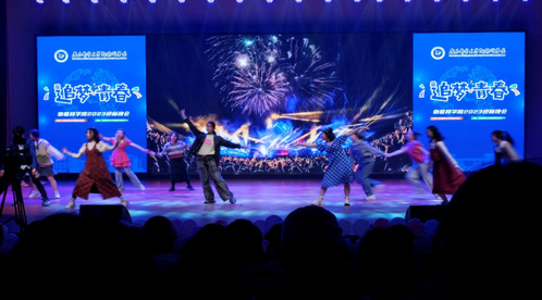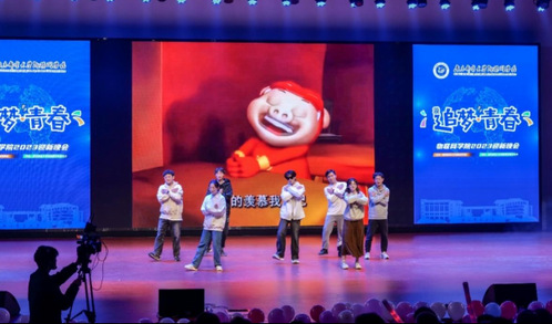 晚会第二篇章《青春·热爱不息》融合多种文化元素,带来活力与艺术的碰撞。相声《学花旦》在诙谐风趣中尽显中华传统艺术之美。倪然同学演唱的《时间煮雨》,伴着茆天爱同学的钢琴独奏,让观众听得如痴如醉。小品《天道“愁”勤》用反向表达的创新演绎提醒同学们要珍惜时光、不负韶华。活力四射的街舞表演《You’ll find a way》生动展现了青年学子的蓬勃朝气;温暖的情歌演唱《小酒窝》带领场下的观众们一起感受爱情的温馨与浪漫。由布玛尔艳姆等七位维吾尔族同学带来的舞蹈《绽放》,以灵动、热情、欢快的舞步完美演绎了民族风情。