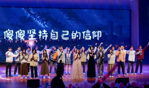 第三篇章《青春·不懈追求》凝聚奋进力量,也将晚会推向了高潮。歌曲《晴天》用简单而动人的旋律生动演绎了青春校园的美好生活点滴。反诈题材情景剧《诈骗天才》在引得观众捧腹大笑的同时,深刻警醒师生们时刻绷紧防范之弦、谨防电信网络诈骗。由辅导员吴孙玉笑老师与小班主任演唱的原创歌曲《一路有你》以及辅导员顾君怡老师与员工干部共同演绎的歌曲《当你》,凝聚了青春的力量,唱出了美好祝福,唱响了美好期待。晚会最后,由学院员工会同学带来超萌舞蹈串烧给整个晚会划上了圆满的句号。