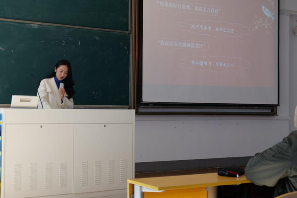 年级大会上,吴老师通过一堂古诗词课程,将诗意和文运,文脉同国脉相结合,引导同学们感悟中国诗歌独特魅力,书写时代青年精神文脉。党的二十大报告中指出的,“推进文化自信自强,铸就社会主义文化新辉煌”。通过吴老师的讲解,同学们都认识到新时代的中国青年,不仅要传承与发扬中华优秀传统文化,还要让世界人民更好地了解中国。吴老师寄语正值青春年华的同学们愿走过“雾失楼台月迷津”的困惑后,总能张扬着“大鹏一日同风起,扶摇直上九万里”的义气。希望同学们在追寻梦想的路上,要有何妨吟啸且徐行,拥有荡胸生层云的旷达,同时也要有悠悠我心的真情。