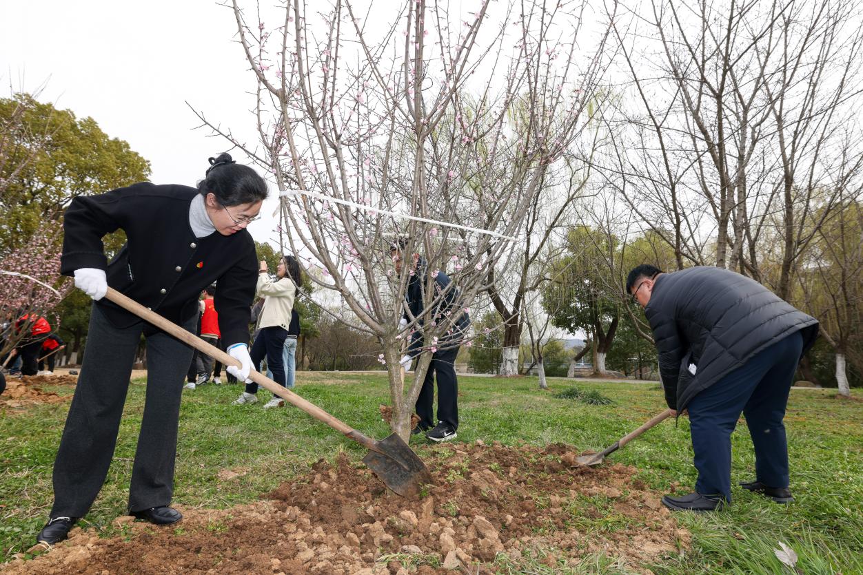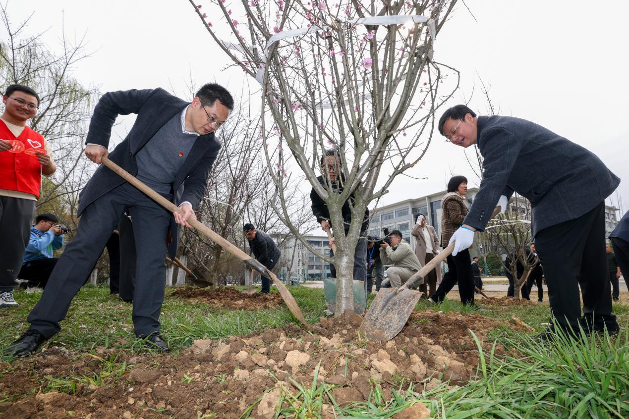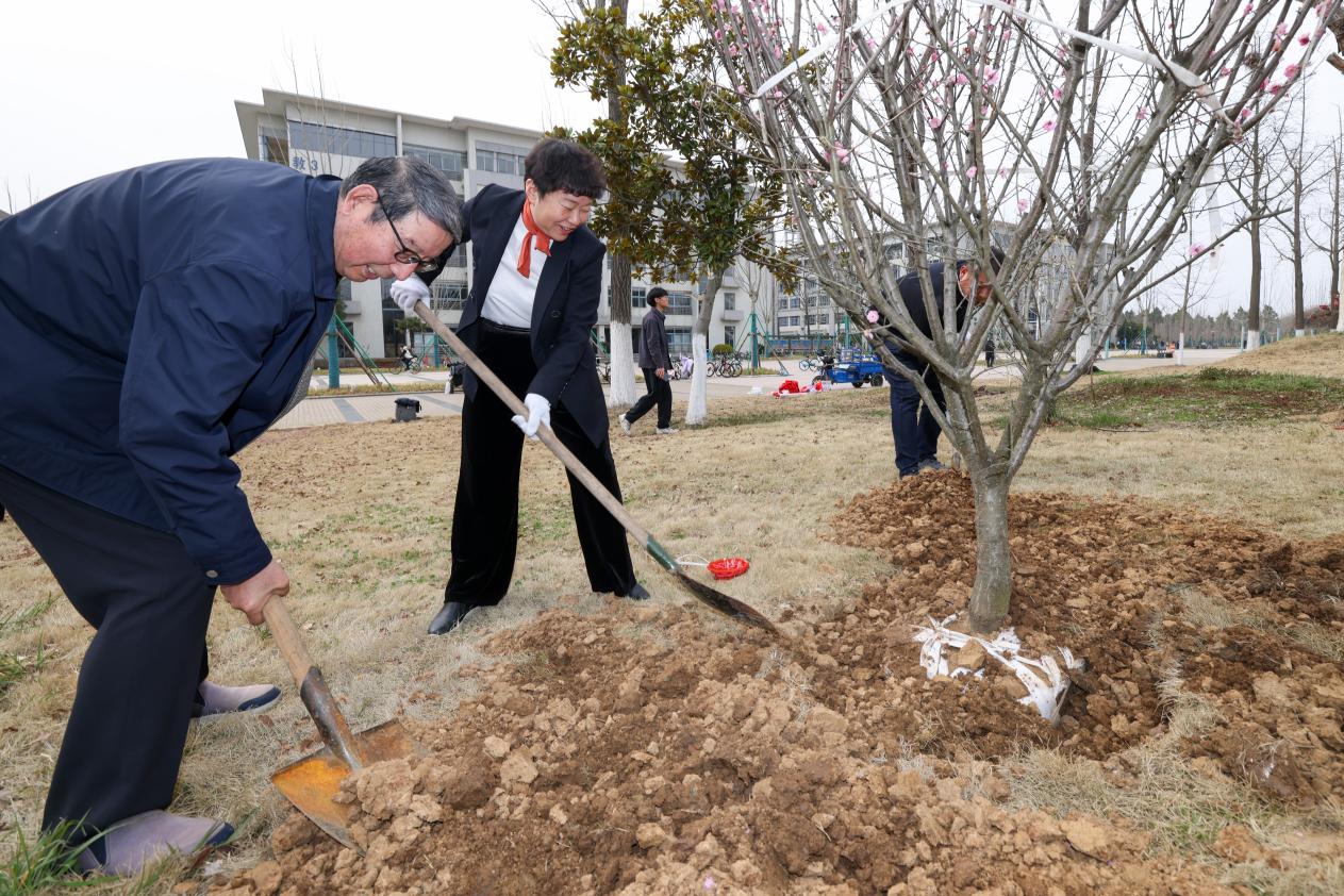 教工三支部书记陈德良与支部教师党员们一边培土一边交流,“教工三支部要发扬红梅精神,继续沿着‘测红色人文,绘党之精神’的党建工作主线,激发支部创新创优潜能,强化江苏省党建工作样板支部建设,以高质量党建促进高质量发展。”