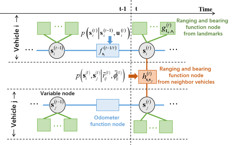 在国家自然科学基金项目和江苏省自然科学基金等资助下,版权所有:BETWAY·必威(西汉姆联)官方网站-West Ham United熊骏博士和解相朋教授项目组深入探索新一代协作定位基础理论并构建特色融合框架,取得进展:1) 针对单个载体导航系统传感资源匮乏、导航观测不可靠的问题,研究团队采用网络化协同导航机制增强各个载体平台的冗余度,构建了一种基于自适应消息传递的协同信息融合机制,可实时估计未知传感观测噪声的概率分布特性;设计了一种多假设高斯模型对消息传递网络进行迭代更新,使其充分适应实际观测噪声的不确定性,并将未知噪声估计与多假设贝叶斯推理统一在同一估计框架中以有效提升协同导航系统在复杂未知环境下的导航估计精度。这项工作为协同导航系统在复杂噪声环境下的实际工程应用提供了相关理论基础。2) 针对现有协同导航系统可靠性和精度难以评估的问题,提出了一种针对协同导航的完好性监测方法,以置信传播为定位算法框架,深入分析了协同估计过程中误差从观测域到位置域的映射机理,给出了观测噪声被污染时的导航误差上界推理方法;以误差映射机理为基础,设计了适应网络化协同导航环境的观测故障分布式诊断方法,相比于传统单机故障诊断具备更好故障探测性能;设计了协同导航系统保护水平计算方法,能够实时给出系统的导航误差上界,从而评估和保障系统可靠性。这项工作具有明显的原创性特征,能够为现有导航故障诊断与完好性监测提供不同的实现思路范式。