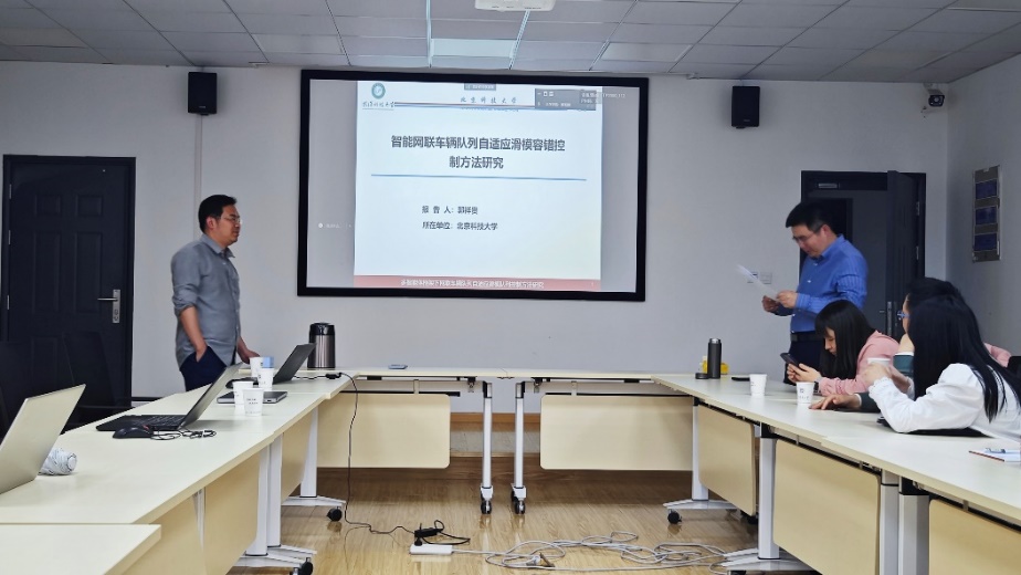 丁大伟教授学术报告分析了有限频域鲁棒综合问题的研究现状,讨论了凸多面体不确定系统在有限频域性能指标约束下的性能分析、控制器设计、滤波器设计等问题,介绍了其研究团队所提出的不确定系统分析和综合的新方法。郭祥贵教授学术报告分析了国内外车联网协同队列控制的研究现状,提出了解决现有方法存在局限性的解决方案以及改良的固定车头时距策略,基于Nussbaum函数法解决故障方向时变未知情况下的车辆队列稳定性和容错控制。