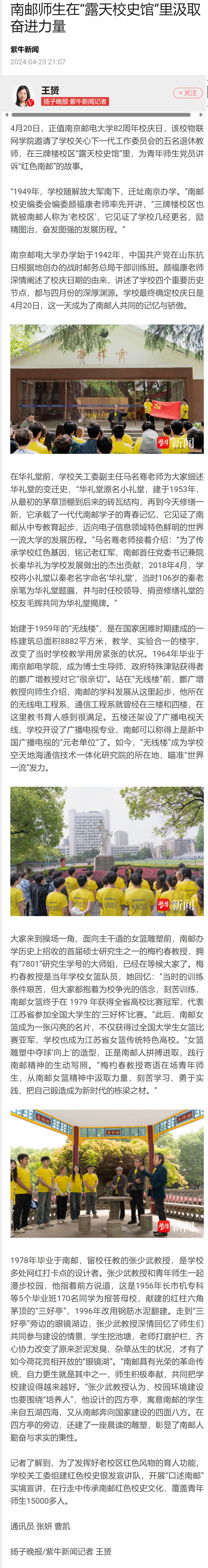 【扬子晚报客户端】南邮师生在“露天校史馆”里汲取奋进力量