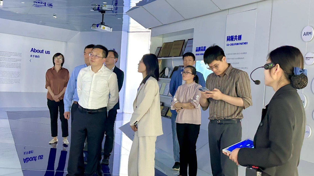 赵经理一行首先参观了润和软件公司展厅。在展厅的科技业务板块,重点听取了公司关于聚焦国产开源自主操作系统——OpenHarmony(开源鸿蒙)和openEuler(开源欧拉)的业务情况,并特别对基于OpenHarmony面向高校的产教融合教学软硬件进行了深入了解。