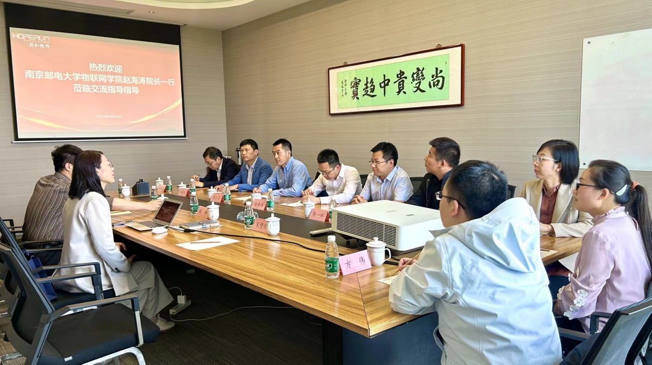 4月26日下午,学院经理赵海涛,副经理苗立志,办公室主任胡文龙,经理助理代海波、陈一祥等一行赴江苏润和软件股份有限公司进行合作交流。润和软件开源鸿蒙生态市场总经理丽娜、开源鸿蒙教育业务总经理刘太俊等热情接待并陪同参观交流。