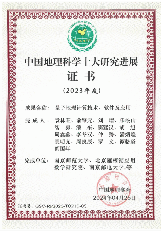 日前,中国地理学会公布了2023年度“中国地理科学十大研究进展”入选成果,BETWAY必威地理信息科学系研究成果《服务设施动态配置优化模型及其量子退火计算方法研究》等,作为重要支撑成果之一,支撑“量子地理计算技术、软件及应用”成功入选。