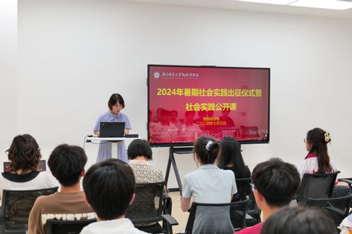 授旗仪式结束后,姚老师围绕实践团队分工协作、实践方案撰写、调研报告撰写以及实践新闻投稿要求和注意事项等方面为同学们讲授社会实践公开课;并梳理了本次暑期社会实践的相关要求,对“挑战杯”红色专项活动进行详细介绍。