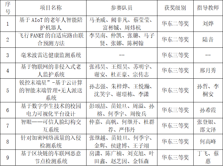 2024年9月6日-9月8日,由全国高校计算机教育研究会主办、温州大学承办的第九届“中国高校计算机大赛-网络技术挑战赛”决赛在温州国际云软件谷举行,通过网络评审和线下答辩相结合的形式,来自浙江大学、上海交通大学、国防科技大学、北京理工大学、东南大学、北京邮电大学等全国高校的315支队伍开展了激烈的角逐。最终南邮学子共取得了华东赛区二等奖2项,三等奖7项的优异成绩。