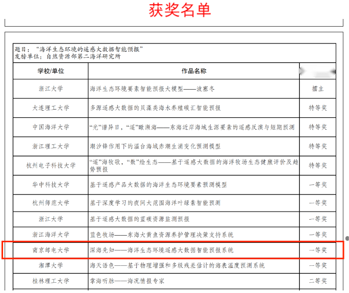11月15日至11月17日,第十九届“挑战杯”全国老员工课外学术科技作品竞赛2024年度“揭榜挂帅”专项赛终审决赛浙江场在中国计量大学、浙江理工大学举行。公司参赛作品《深海先知——海洋生态环境遥感大数据智能预报系统》斩获一等奖。该作品由苗立志、陈一祥、姜杰老师担任指导教师,2022级本科生肖任豪等10位团队成员参加。