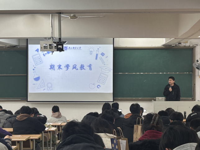 会议伊始,于老师回顾了本学期的主要工作,并对员工们的认真学习以及取得的成绩给予了肯定。其次,面向年级员工开展了辅导员、班主任面对面测评工作。随后,于老师面向全体同学开展了劳模工匠精神教育,并对工匠精神进行了阐释,希望同学们能学习优秀员工的事迹,追求上进。接着,于老师强调了诚信在学术和生活中的重要性,并提醒同学们注意假期安全,包括交通、网络和个人财产安全等方面。心理健康教育及宿舍管理方面,老师指导我们要保持良好心理状态和宿舍环境,鼓励同学们在遇到困扰时寻求帮助,并维护和谐的宿舍关系。最后,于老师重点强调了期末阶段的复习工作,他鼓励同学们积极备考,营造良好的个人学风、宿舍学风、班级学风以及年级学风。