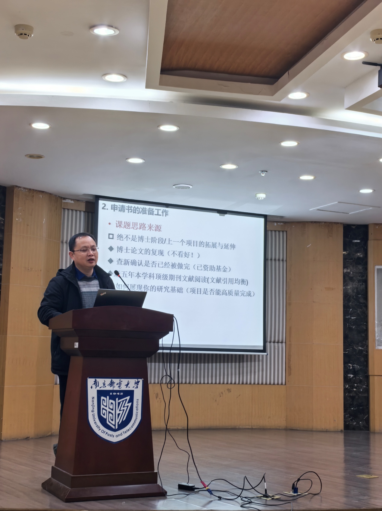 李世华教授结合自身丰富的科研经历和基金评审经验,从课题思路的来源、初步研究、团队组织等方面,系统讲解了项目申请的准备工作。他强调,选题是基金申报的关键,要立足学科前沿,面向国家重大需求,凝练出具有创新性和可行性的科学问题。在申请书撰写方面,李教授从题目、立项依据、研究内容、研究方案、可行性、关键科学问题、特色与创新点、研究基础等方面进行了深入剖析与细致指导。他结合具体案例,详细讲解了各部分撰写的要点和注意事项,并分享了提高申请书质量的实用技巧。随后,李教授还结合个人科研经历,分享了宝贵的科研心得与独到见解。他鼓励青年教师要保持科研热情,勇于探索未知领域,注重团队合作,不断提升自身科研能力。