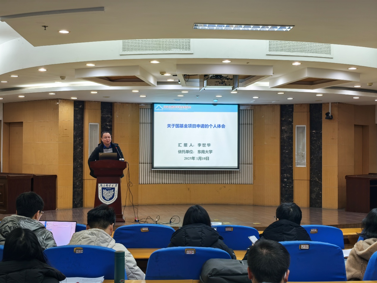 1月10日上午,为全面提升公司教师申报国家自然科学基金项目的质量,学院召开了2025年国家自然科学基金项目申报专题辅导会,会议特邀国家杰出青年科学基金获得者、东南大学李世华教授作专题报告。拟申报本次基金项目的60余位老师聆听了此次报告。