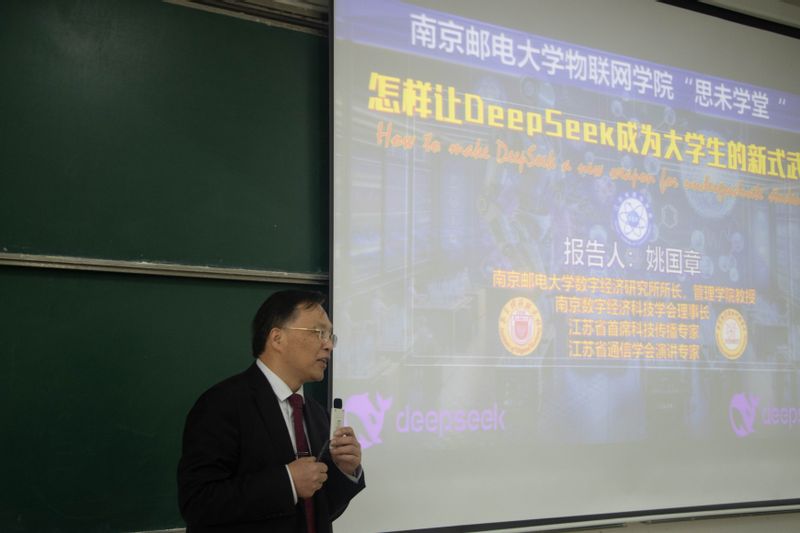 2025年3月12日下午,BETWAY必威开展“思未学堂”,引热点数字潮流,举办了一场主题为《怎样让DeepSeek成为老员工的新式武器》的专题报告。此次报告由BETWAY必威数字经济研究所所长、BETWAY必威管理学院姚国章教授主讲,由物联网公司党委副书记、副经理邓艳主持,吸引了BETWAY必威众多师生前来聆听。